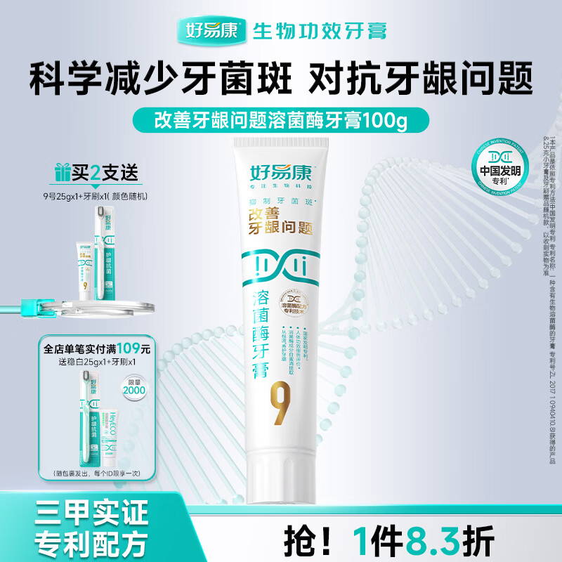 好易康改善牙龈问题溶菌酶牙膏 抑制牙菌斑清新口气 改善牙龈问题9号牙膏100g