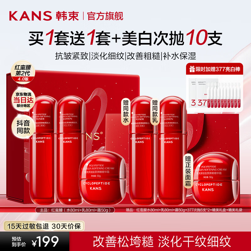 韩束(KanS)红蛮腰水乳护肤品套装抗皱紧致化妆品全套礼盒送女友妈妈生日礼物 【超值囤货】水+乳+霜