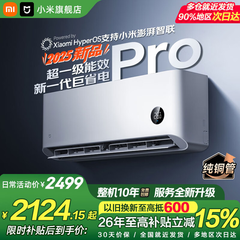 小米(MI)空调米家 1.5匹 巨省电 新一级能效 变频冷暖 家用卧室 壁挂式自清洁舒适空调挂机 巨省电pro 25款 1.5匹 APF5.65双杠压缩机