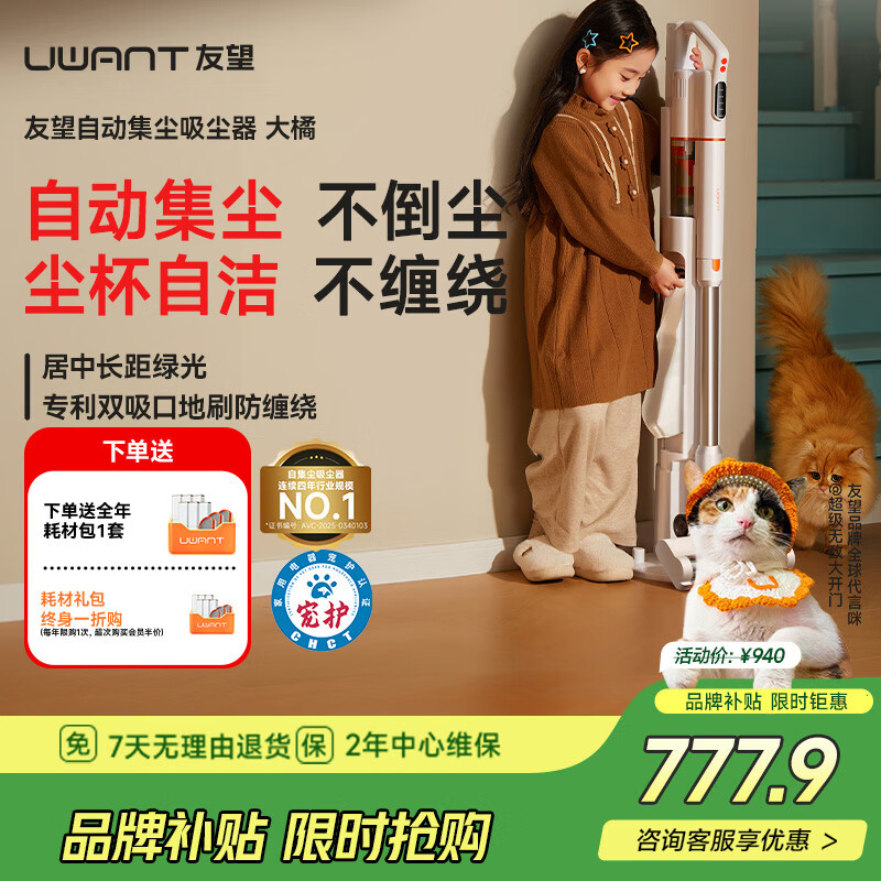 UWANT友望吸尘器大橘pro【专利防缠绕】家用无线手持自集尘吸尘器 宠物毛吸尘器家用大吸力 VC2403 大橘