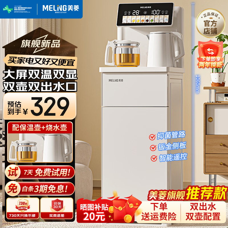 美菱(MeiLing)茶吧机 家用立式温热型饮水机多功能智能遥控茶吧机 大屏双温双显【抑菌管路】 制热型