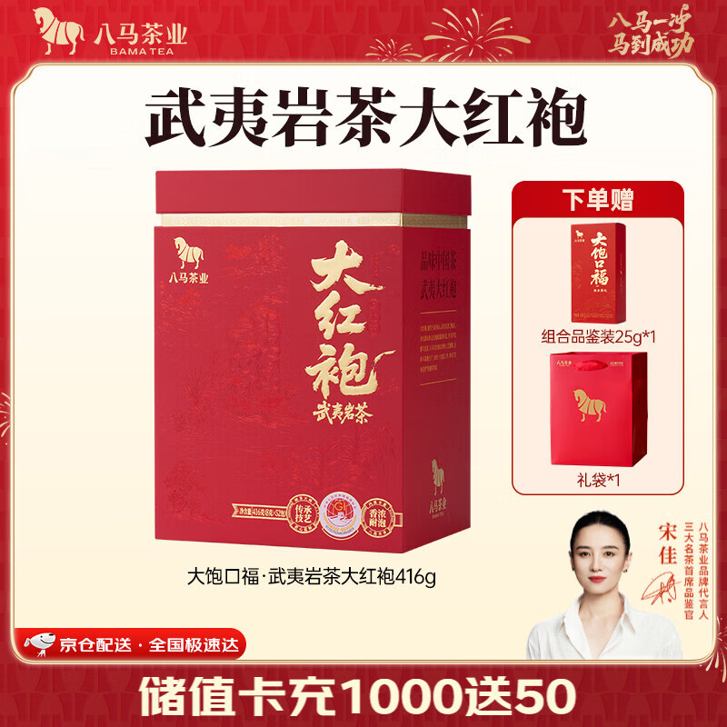 八马茶业 大饱口福 单丛鸭屎香 大红袍 金骏眉 冰岛普洱 送礼茶叶 礼盒装 【武夷岩茶大红袍】416g