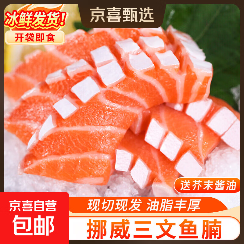 挪威冰鲜三文鱼刺身中段鱼腩大西洋鲑开袋即食健康轻食鱼类净重 【2盒】鱼腩切片 400g