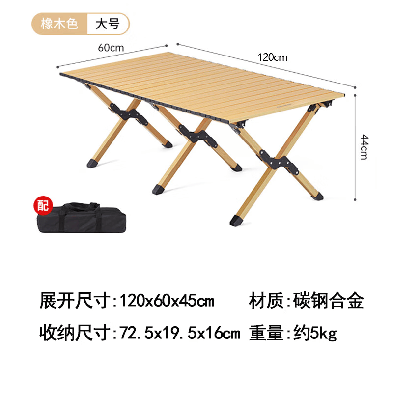 野徒者户外折叠椅露营椅子躺椅便携折叠月亮椅小凳子折叠凳钓鱼凳 原木色【120*60蛋卷桌】 出口质量加粗