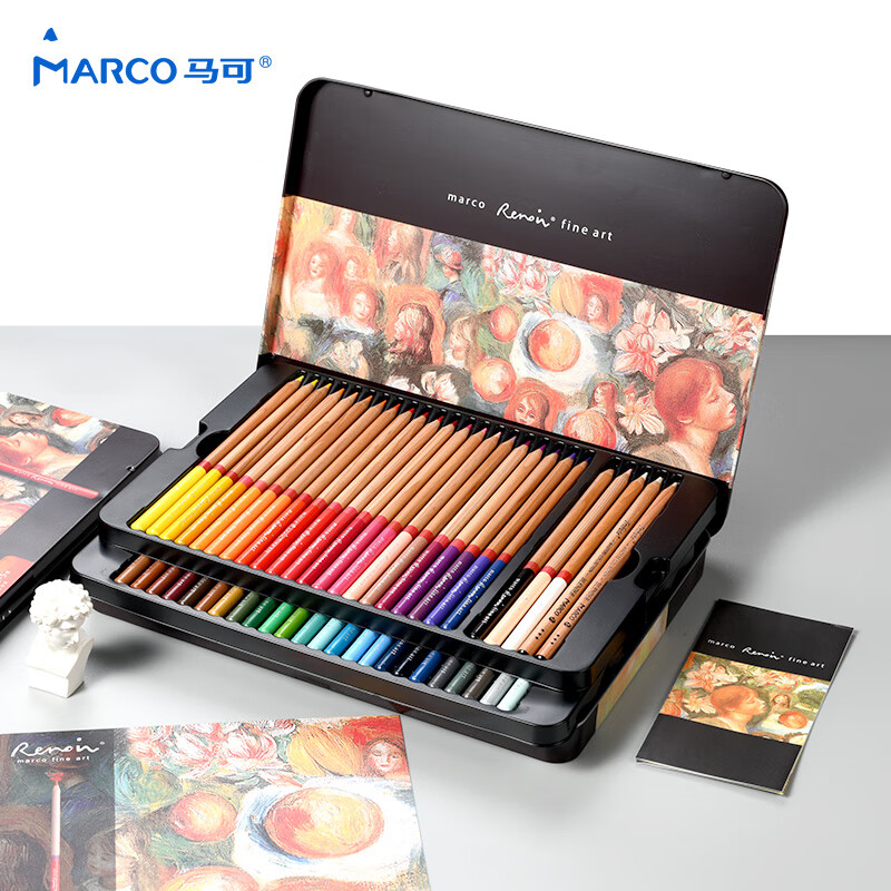 马可(MARCO)72色油性彩铅美术生专用 雷诺阿系列铁盒开学生日礼物儿童男女孩学生画风筝出游相纸涂鸦彩色铅笔