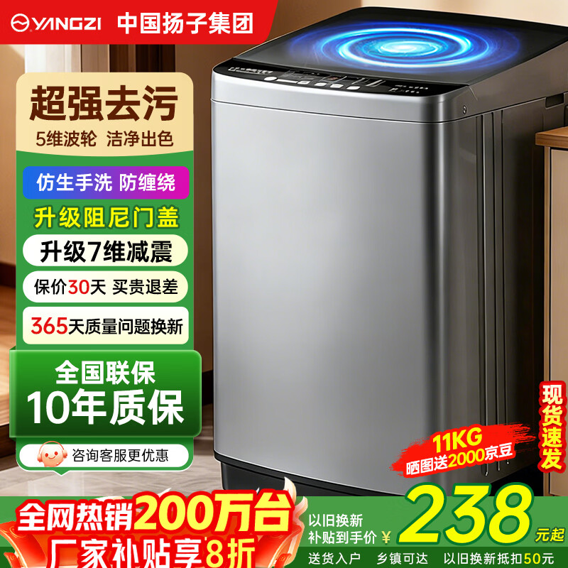 YANGZI扬子集团大容量波轮洗衣机全自动蓝光智能预约强力风干自清洁宿舍家用洗衣机洗烘一体小型甩干机 11kg【蓝光升级+10年质保+强动力电机】 波轮