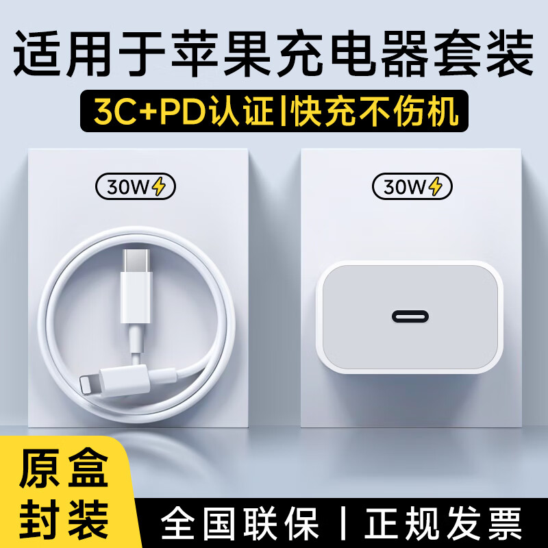 尊匠苹果充电器6-17系列正品充电线氮化镓30/40W快充线PD套装适配原装iPhone14ProMax手机充电头数据线 【苹果6-14系列】30W快充头+1米闪充线