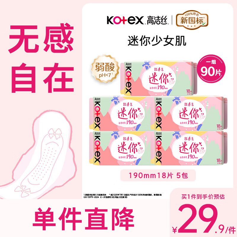 高洁丝日用迷你小Q包透气亲肤护垫卫生巾姨妈巾 【护翼】迷你巾190mm90片