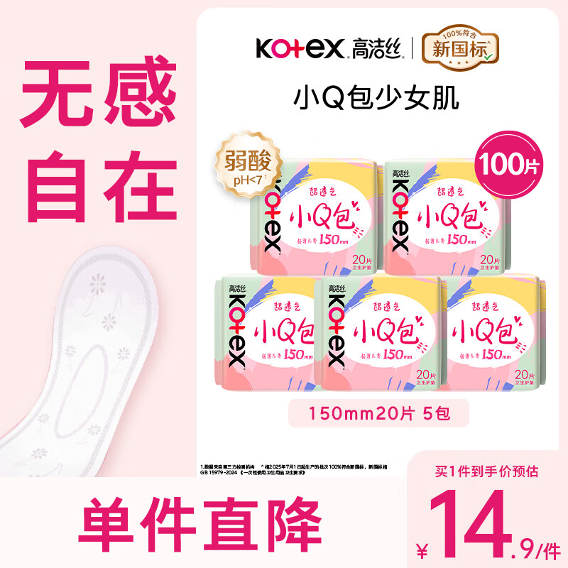 高洁丝日用迷你小Q包透气亲肤护垫卫生巾姨妈巾 小Q包护垫150mm100片