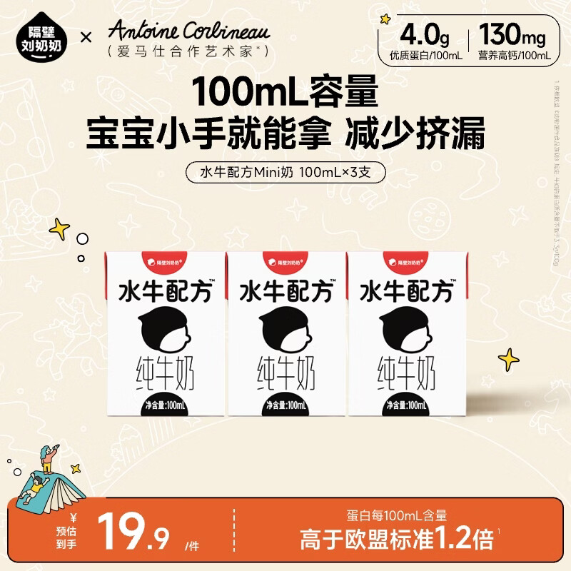 隔壁刘奶奶水牛配方纯牛奶100ml*3盒4.0g蛋白纯牛奶+水牛奶送礼礼盒