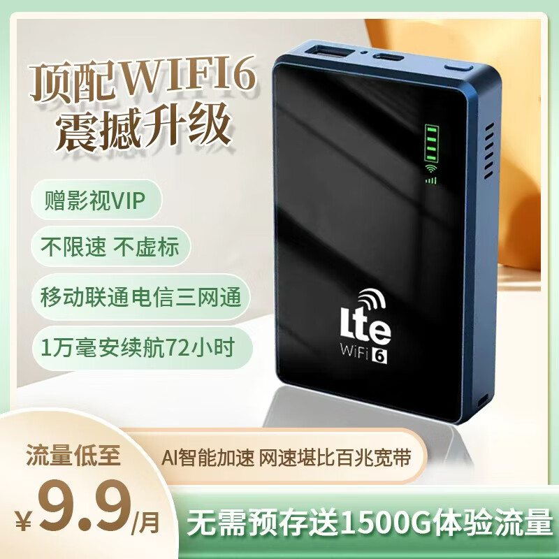 乔锐斯随身wifi无线2026款全国通用5ghz无线流量充电宝二合一官方正品免插卡三网通用无月租可移动wifi 【新方块款蓝色一万毫安】三网通用-5Ghz