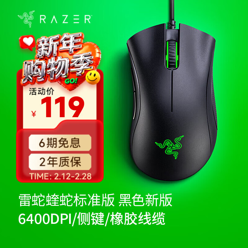 雷蛇(Razer) 炼狱蝰蛇标准版 宏电竞游戏 鼠标有线人体工学机械炼狱电脑LOL CF适用 炼狱蝰蛇标准版-黑色
