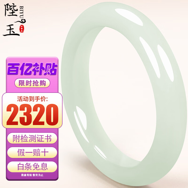 陛玉和田玉手镯女款青白玉镯子附鉴定证书