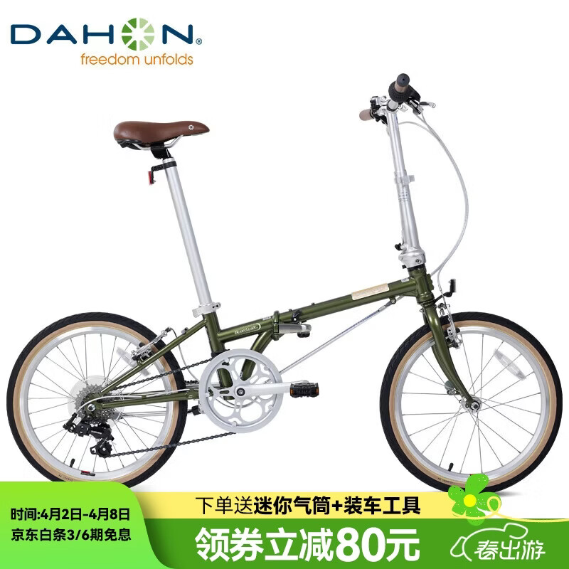 大行(DAHON)20英寸铬钼钢7速男女式学生复古单车HAC071 橄榄绿