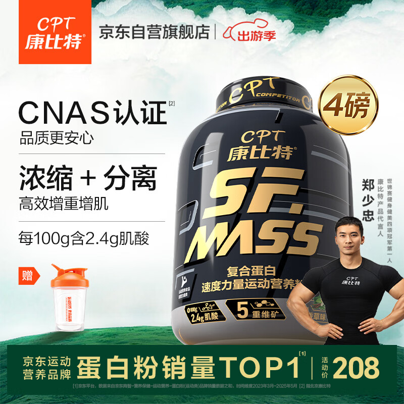 康比特增肌粉瘦人增肌增重健身塑型含肌酸分离乳清蛋白粉1800g 香草味