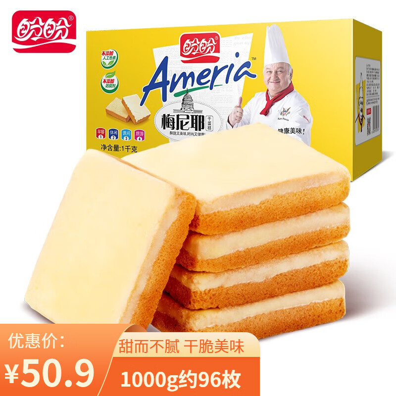 盼盼梅尼耶干蛋糕饼干糕点零食多口味奶酪休闲食品整箱礼盒 干蛋糕1kg(奶香味)【约96枚】