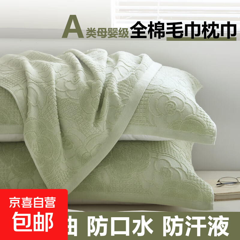 纯棉枕巾一对装家用全棉枕头巾防口水男垫巾单人防头油枕头套床品 ag-繁花绿-100%全棉 吸湿透气 52*75cm/只