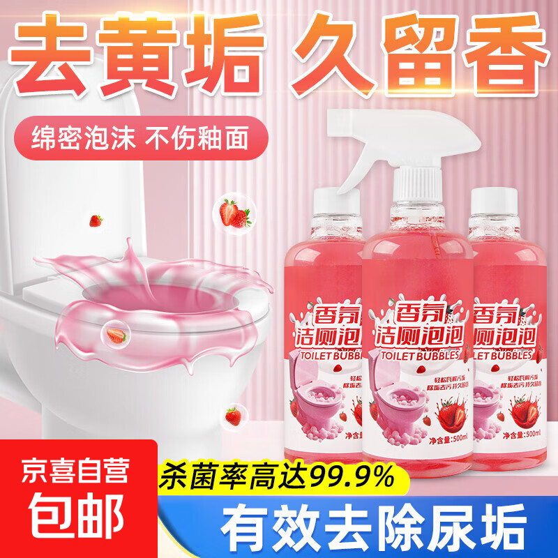 马桶清洁剂香氛洁厕泡泡强力去污垢去黄去异味除尿碱溶解剂清香型 香氛洁厕液500ml*3瓶(3个喷头)