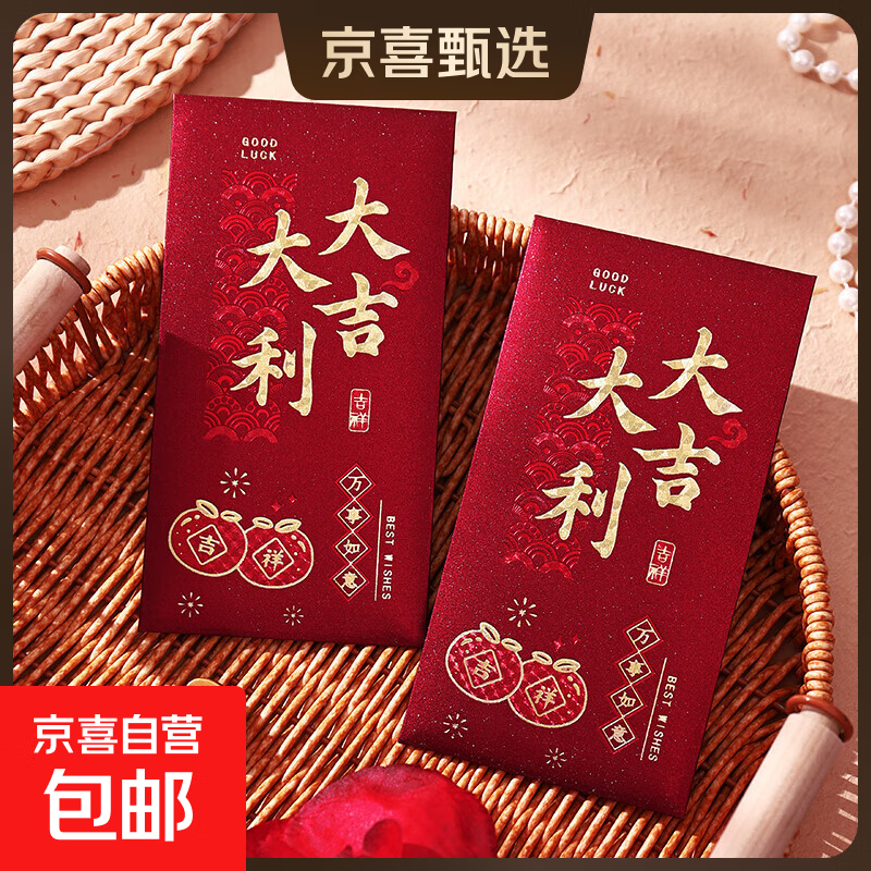 新款2026春节千元红包喜字福字大吉大利过年磨砂鎏金利是封 大吉大利 6个 磨砂赤金红包【3包】