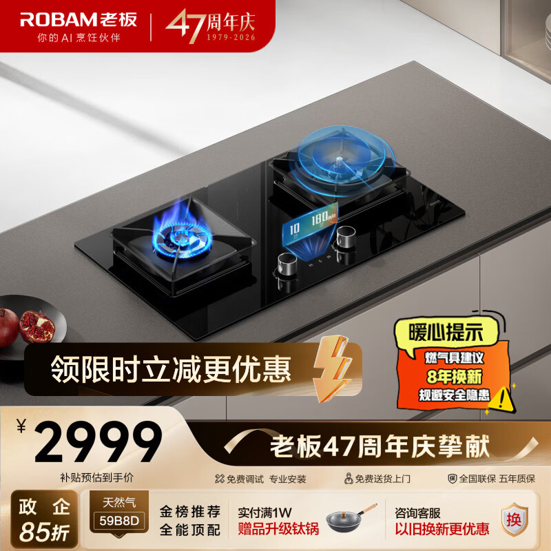 老板(Robam)【全能顶配火神灶】C5S天然气猛火燃气炉灶煤气双灶台家用灶具59B8D以旧换新一级能效上门安装