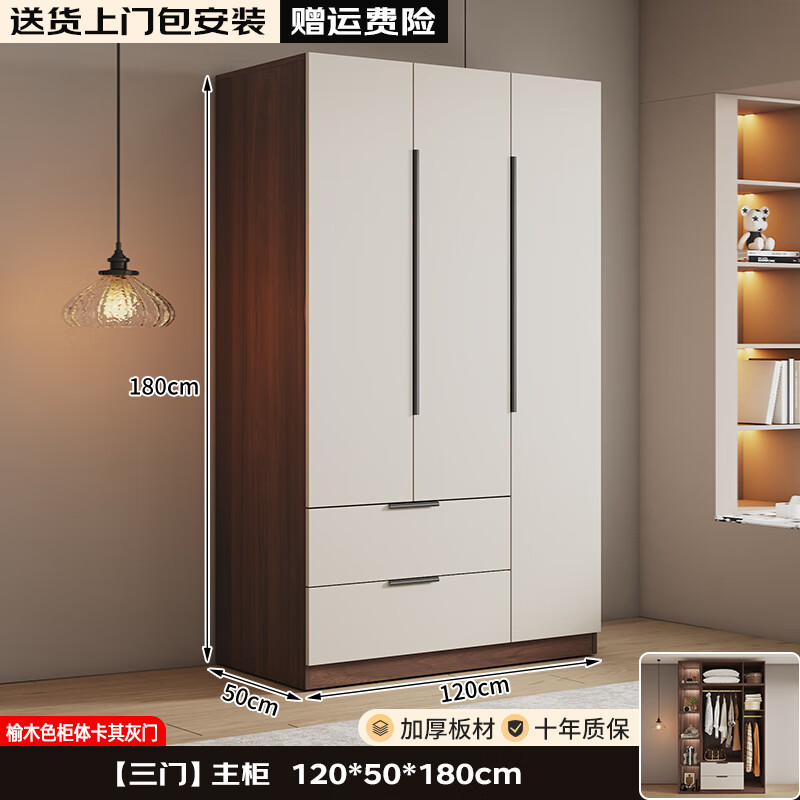 陌隆福衣柜卧室家用出租房用组装简易储物柜小户型简约现代衣橱 【三门】1.2米主柜
