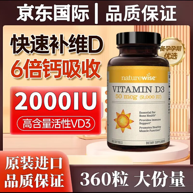 自然薇萃【限时秒杀】阳光瓶360粒维生素d3活性25羟基全家补钙男女备孕VD3 【全家同补】 2000IU 360粒*1瓶