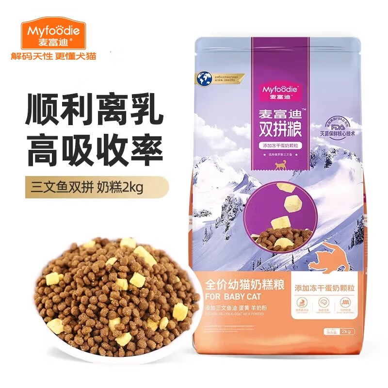 麦富迪 冻干猫粮 超肉粒冻干双拼粮(冻干三文鱼) 奶糕粮2kg