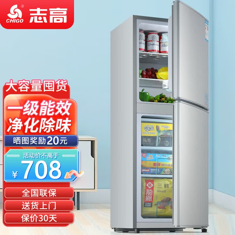 志高(CHIGO)双门冰箱家用小型一级能效办公室出租房宿舍用双开门中型二门电冰箱节能省电 一级能效-净味款177L【冷藏三层 冷冻三层】