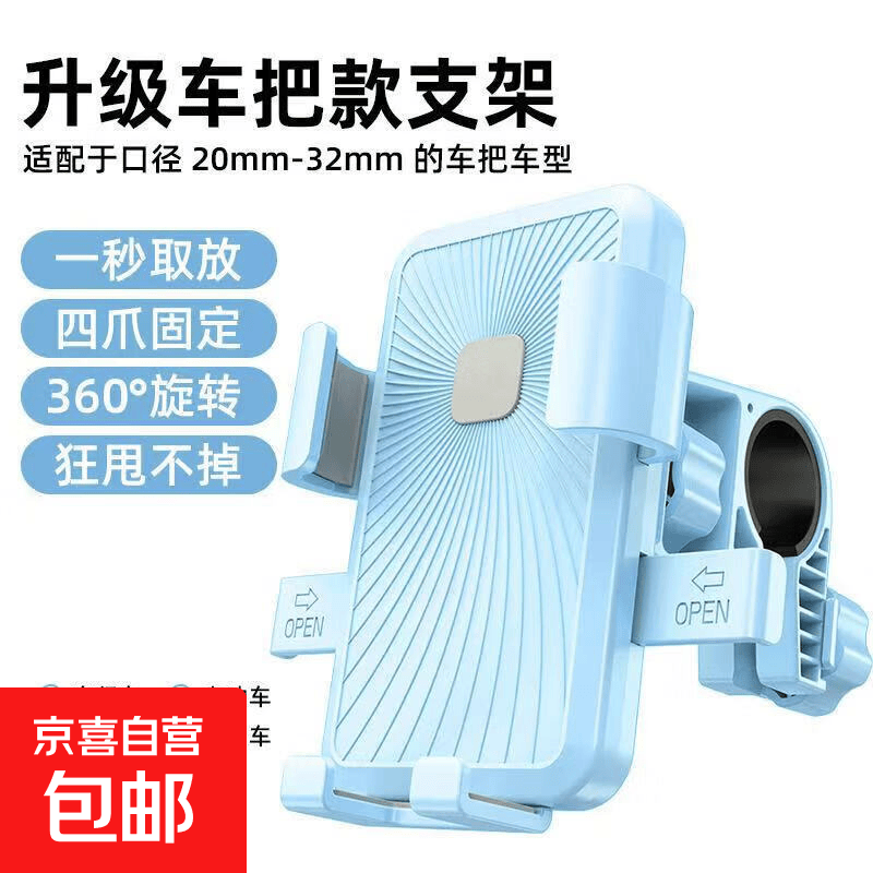 【京东包邮】电动车摩托车可旋转手机支架导航神器外卖骑手车载便携防震装备 天空蓝【重力感应/升级车把款】