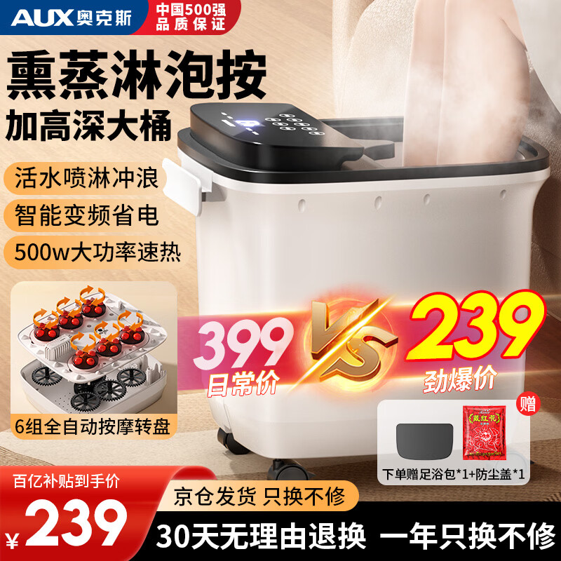 奥克斯(AUX)泡脚桶足浴盆电动按摩洗脚盆足疗恒温加热全自动按摩2025泡脚按摩一体机实用生日礼物送妈妈爸长辈 【豪华电动按摩款】双喷淋+大桶+变频省电+触控按键 生日礼物送爸爸妈妈女士男士长辈老人
