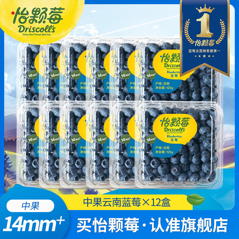 怡颗莓【颗颗饱满】当季云南蓝莓 国产蓝莓 新鲜水果送礼 云南当季125g*12盒(14-18mm)