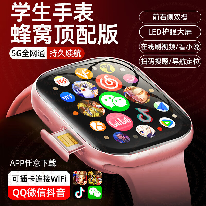 XAA华强北顶配S10Ultra蜂窝版5G全网通插卡智能电话手表微信聊天GPS定位学生初高中生青少年6-18岁 插卡粉【双摄像头】+任意下载+微信QQ抖音 5G全网通+超薄机身+手机级芯片丝滑流畅