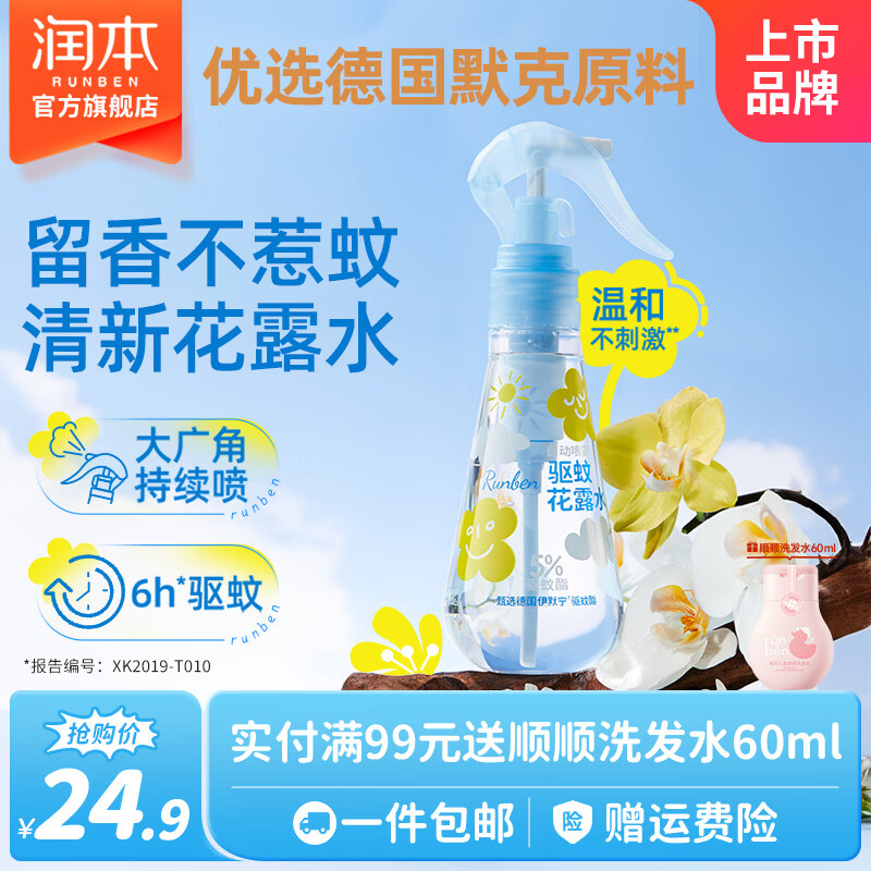 润本驱蚊液驱蚊喷雾防蚊液花露水户外防蚊虫叮咬驱蚊水蚊怕水防蚊喷雾 185ml 1瓶 【5%驱蚊酯】花露水