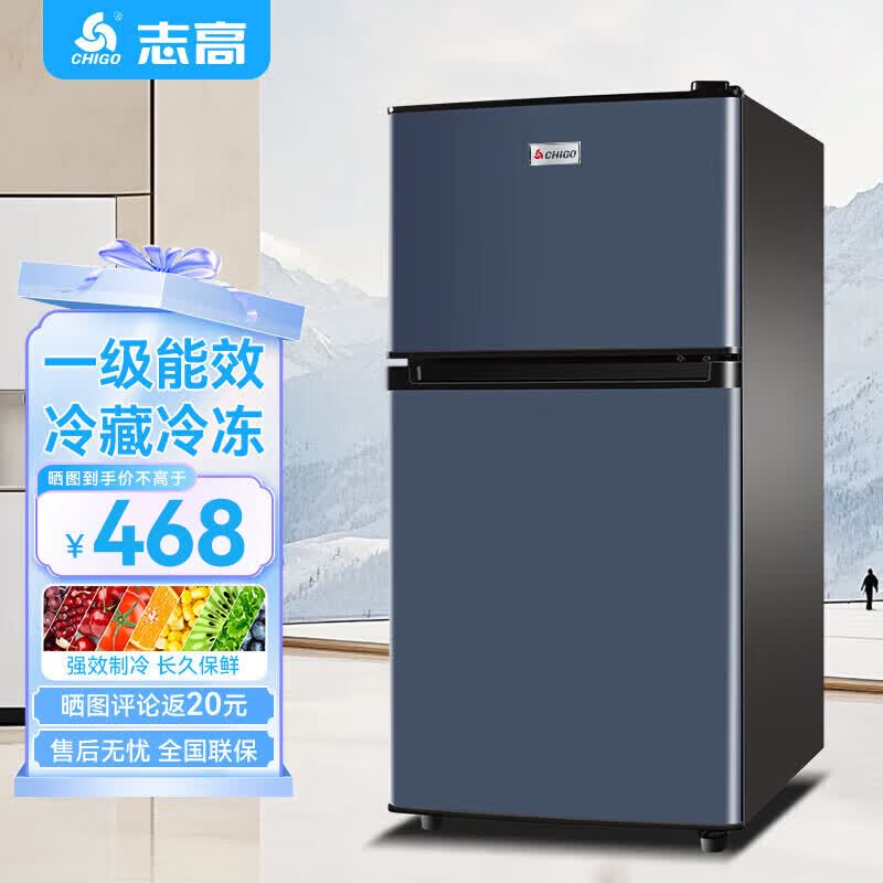 志高双门冰箱小型出租房宿舍双开门冷藏冷冻一级能效家用大容量办公室电冰箱二门微霜 【一级能效】98L灰色【高效保鲜 铜管速冷】