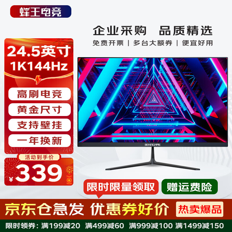 蜂王电竞显示器电脑屏幕主机办公显示屏 高刷电竞游戏屏 高清HDMI笔记本外接副屏设计影视娱乐家用壁挂监控 【电竞爆款】24.5英寸144Hz高刷直面屏