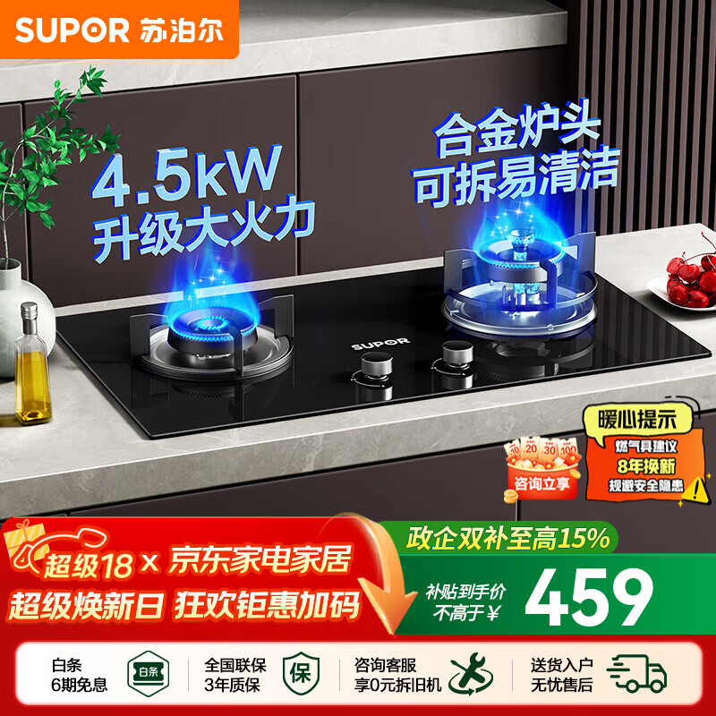 苏泊尔(SUPOR)燃气灶天然气双眼灶具台式嵌入式两用液化气灶家用节能炉具旋火蓝焰猛火一级能效熄火防护煤气灶 【小户高性价】节能燃气灶NB05S 【罐装液化气20Y】