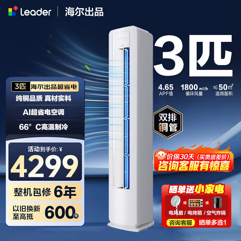 海尔空调出品大3匹柜机超省电Air 新一级能效大双排纯铜管极速制冷热自清洁省电立式大客厅 超省电 性能标杆+开机即省电 3匹 一级能效
