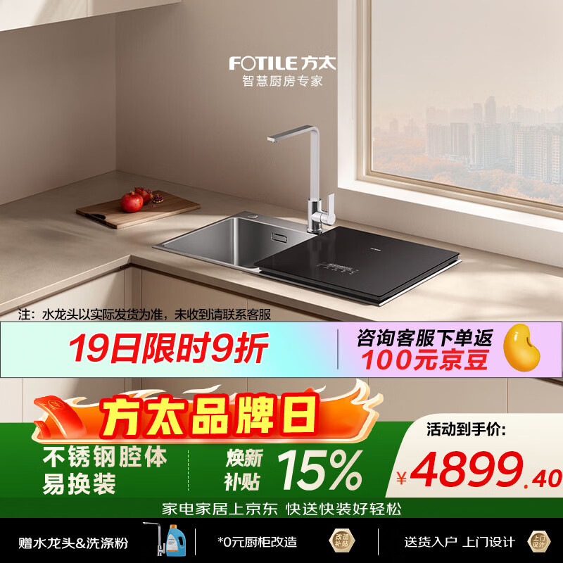 方太【水槽式洗碗机M1】大容量不锈钢槽体高能气泡洗100℃蒸汽除菌洗碗不弯腰洗果蔬去农残 洗碗机在右