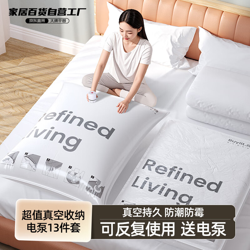 BEYYIT真空收纳袋 搬家打包袋压缩袋被子衣服衣物13件套【电泵简约款】