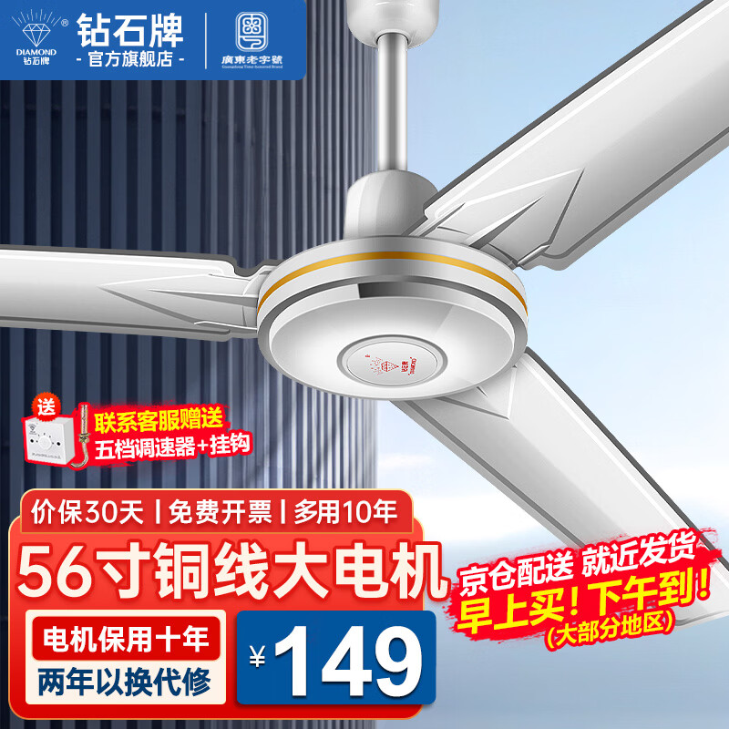钻石牌(DIAMOND)吊扇电风扇铜芯电机铜线家用吊顶风扇56吋工业工厂车间客厅吊风扇大风力宿舍电扇 56寸大吊扇(铜线电机)