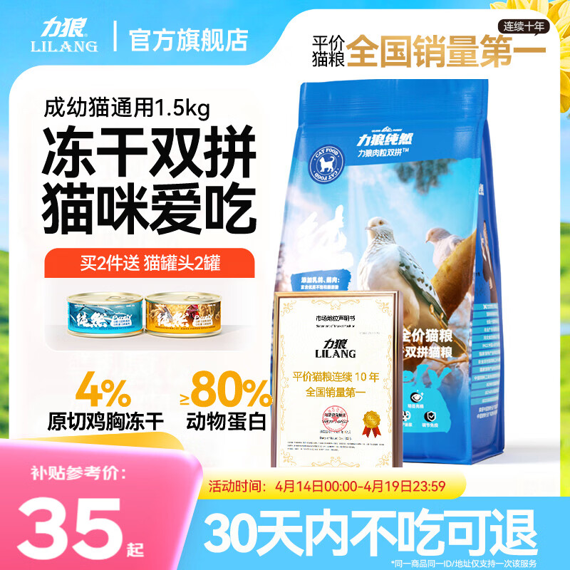 力狼猫粮 成猫幼猫通用型天然粮 【进阶护胃-尝鲜】鲜肉冻干双拼1.5kg