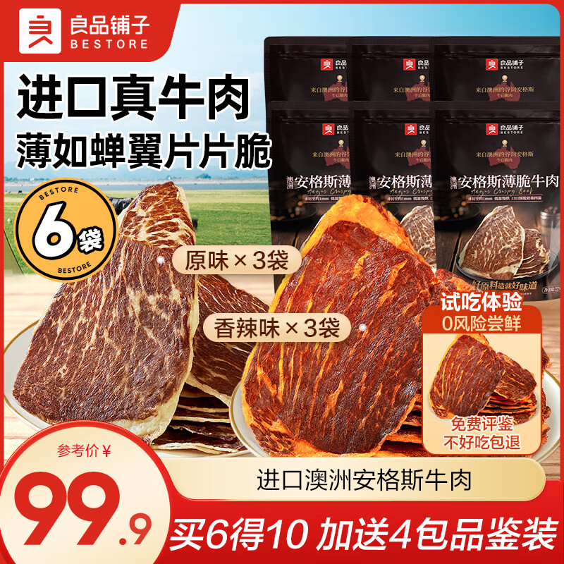 良品铺子安格斯薄脆牛肉脆片牛脆脆牛排脆牛肉干肉脯休闲零食大礼包解馋 【买6送4】双口味6袋送4包品鉴 100%安格斯牛