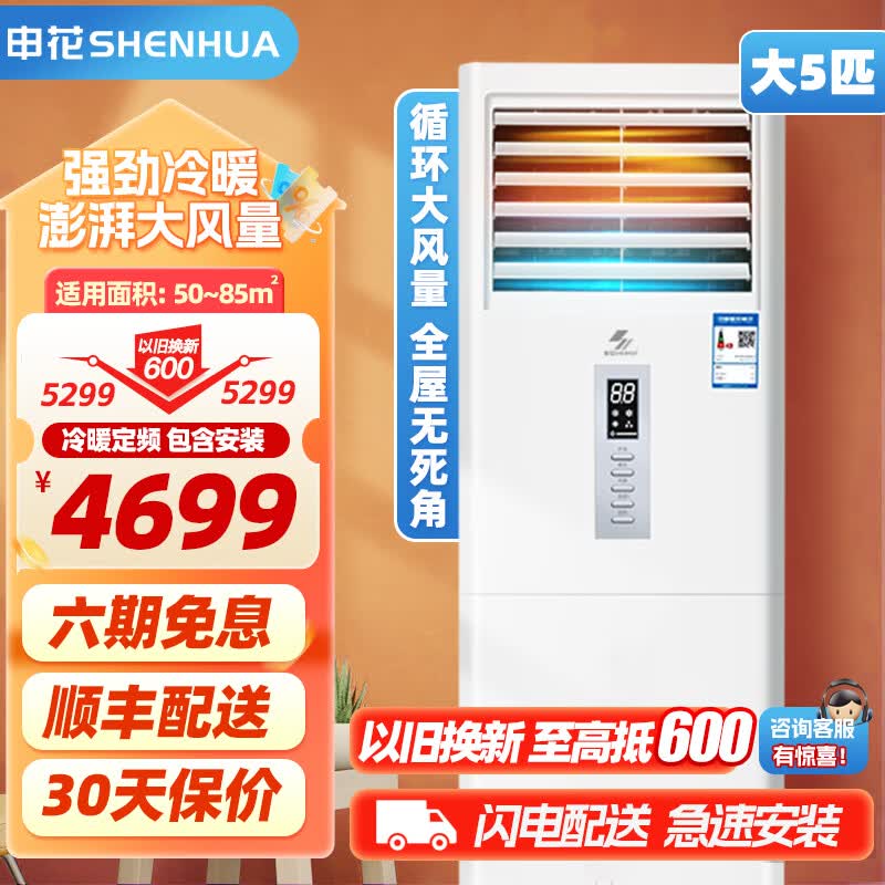 申花(SHENHUA) 大3匹 空调补贴 立式柜机 落地式 家用空调圆柱柜机 节能省电 急速冷暖 以旧换新 大风量客厅除湿 大5匹 冷暖 一级变频 家商两用 含安装 六年联保丨顺丰入户