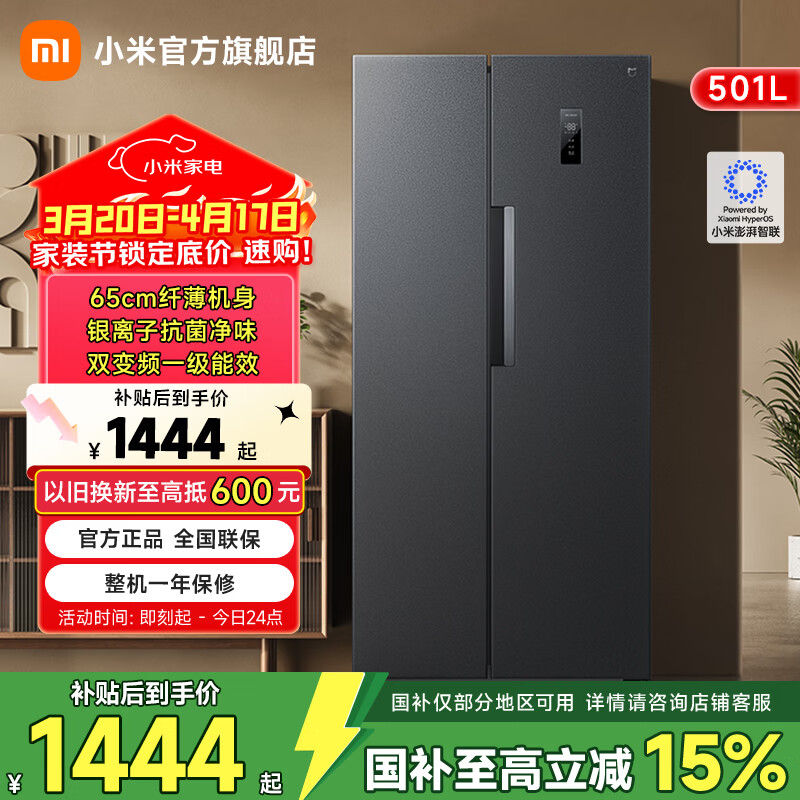 米家小米501升冰箱对开门双开门家用冰箱风冷无霜银离子除菌一级能效 BCD-501WMSA
