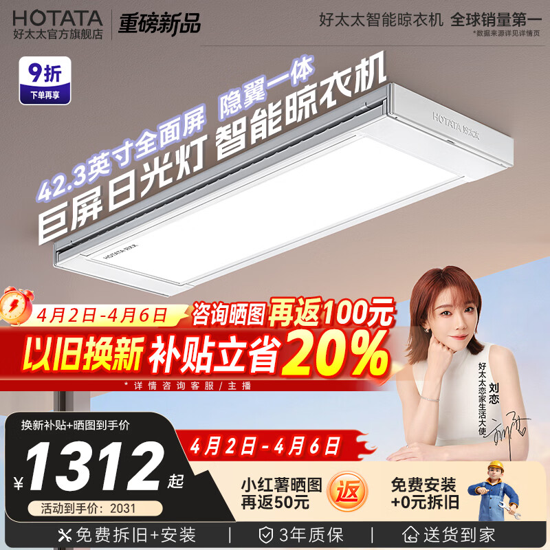 好太太电动晾衣机光影小天舱智能晾衣架家用阳台升降晾衣机 T30-ZL白色:巨屏日光灯+航天联名+离线语音