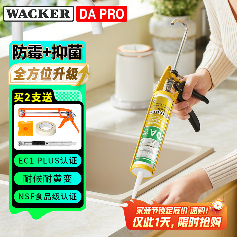 瓦克DA PRO防霉玻璃胶厨卫密封胶防水美容胶中性硅胶马桶封边胶水 DAPRO加强版 防霉抑菌双升级白色