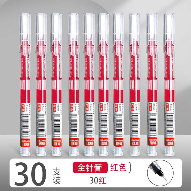 真彩直液式中性笔黑色0.5mm全针管速干大容量巨能写商务办公走珠签字笔学生文具考试刷题笔水笔 【囤货装】30支-红色 0.5mm