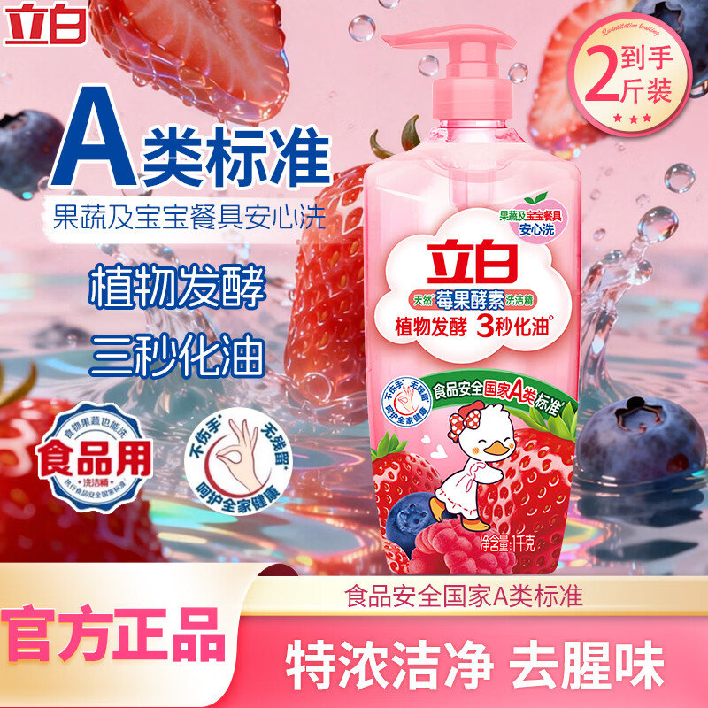 立白莓果洗洁精小苏打柠檬去油污果蔬清洗剂家用餐具净洗洁精官方正品 莓果洗洁精1000g