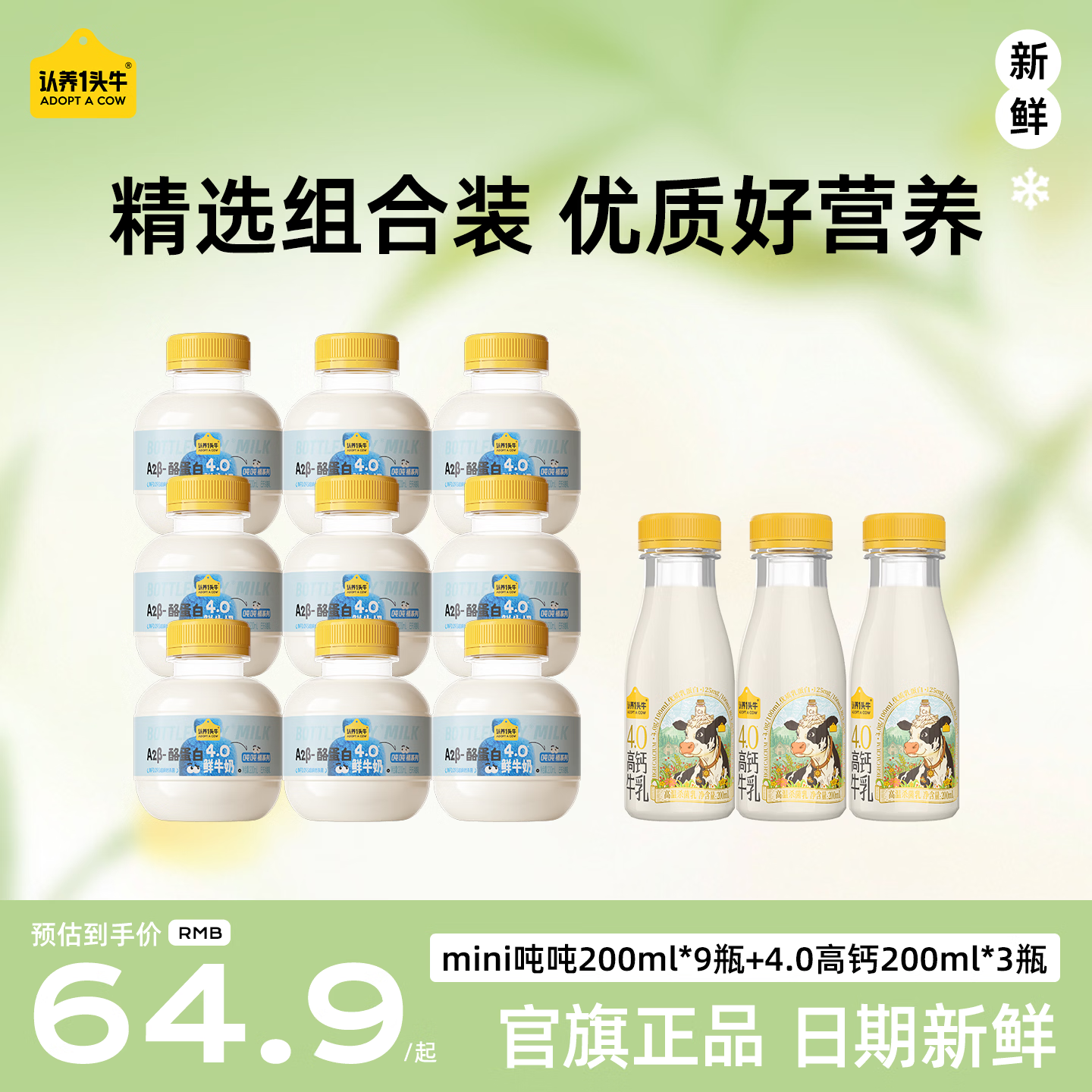认养一头牛【代言人同款】mini吨吨奶A2β-酪蛋白4.0牛乳鲜牛奶营养儿童牛奶 【组合装】mini吨吨200ml*9瓶+4.0高钙200ml*3瓶