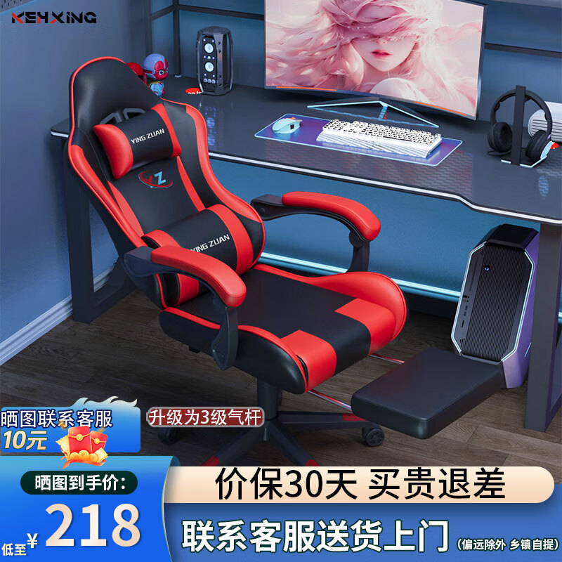 科幻猩电竞椅电脑游戏椅舒服久坐家用椅子办公椅可躺可升降椅座椅躺椅 YZ高配-黑红-乳胶坐垫+搁脚+三级气杆-尼龙脚 滑轨扶手